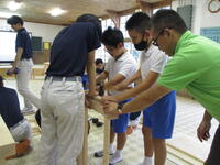 3つグループに分かれて作業開始。各パーツの組み立て作業が中心ですが、これがなかなか難しく、力のいる作業でした。高校生が丁寧にやさしく教えてくれます(*⌒▽⌒*)
