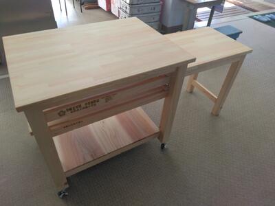 レーザーで名前などを入れていただき、木の香りが漂う立派な配膳台が完成しました!