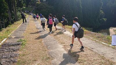 国宝指定となった通潤橋の上を歩く子どもたち。よい経験となりました。