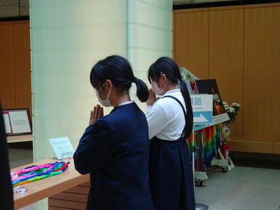 平和祈念館では、追悼と平和への願いを心を込めて折った千羽鶴を捧げました。