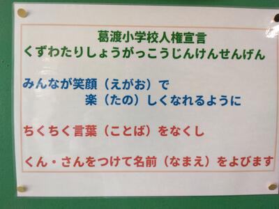 第2回児童集会(葛渡小キャラクター発表、人権宣言)