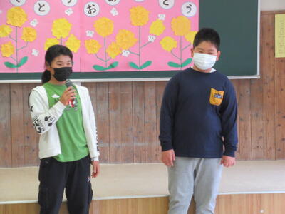 代表して6年児童が、ご指導いただいた交通指導員の嶽本様と水俣市役所地域振興課の荒木様に、お礼の言葉と感想を述べました。「ぼくは横断歩道の渡り方など気をつけて交通ルールを守っていきます!」