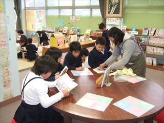 周りの机にもたくさんの子どもたちが座って本を読んでいました。