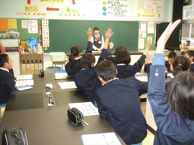 熊本県環境センターから環境指導員の先生方に来ていただき、地球