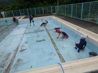 ↑こちらは、6月2日に行われたプール掃除の写真です。プールの内側の汚れや周辺のゴミも、みんなピカピカに掃除してくれました。