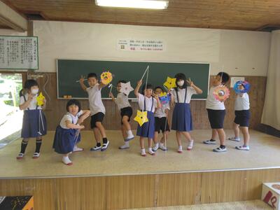 次に5・6年生から、学校キャラクターと人権宣言の2つの発表がありました。