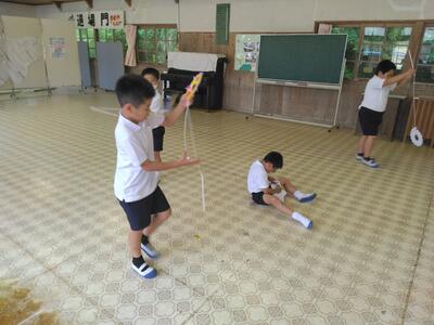 1・2年生児童は小プールでぐるぐると「洗濯機」( ^o^)ノ( ^o^)ノ( ^o^)ノ