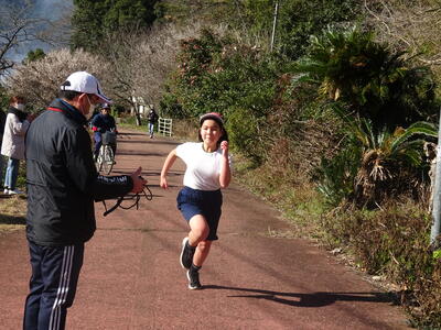 「日本一長い運動場」で持久走大会を開催しました。一人一人が目標タイムを設定しこれまで練習を頑張ってきました。