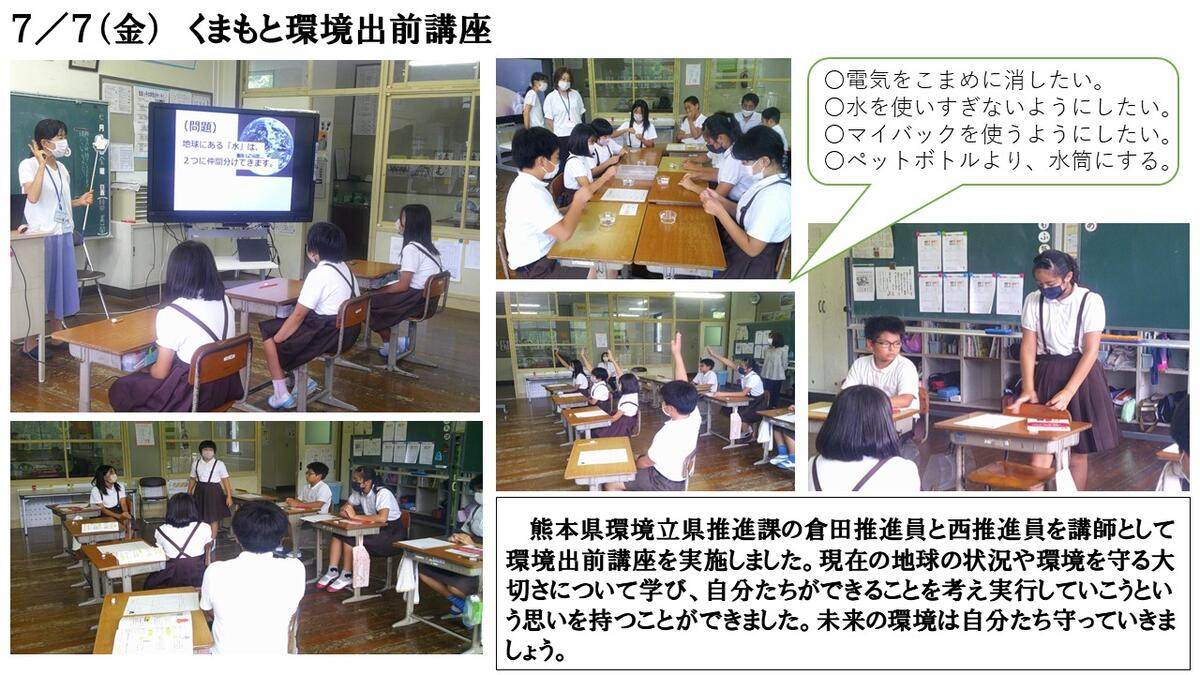 7月11日(火)の業間の時間に環境集会を行いました。SDGSとは持続可能な社会(ずっと住み続けられる社会)についてスライドで学び、その後、運営委員会とすこやか委員会で自分たちのSDGS活動についての発表がありました。教良木小学校では子供たちみんなでSDGsにつながる活動を行います。