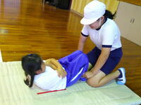 6月8日(木)に2回目の体力テスト(体育館)が行われました。室内で反復横跳び・体前屈等の測定をしました。1年生から6年生まで全員が最後のシャトルランまで全力で頑張りました。