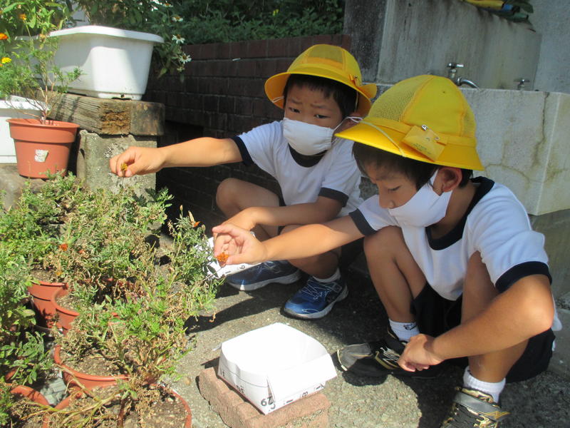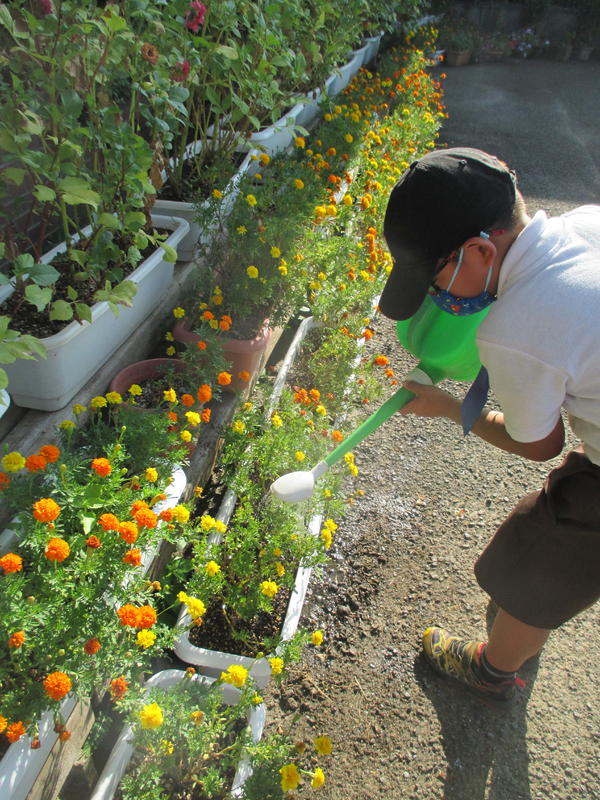 4月に植えた「人権の花」がきれいに咲き誇っています。朝の水やりや草引きを頑張り、きれいな花が咲きました。きれいな花を眺めながら、暑い2学期を頑張っていきましょう。これから、種取り、保護者と種袋入れを行う予定です。