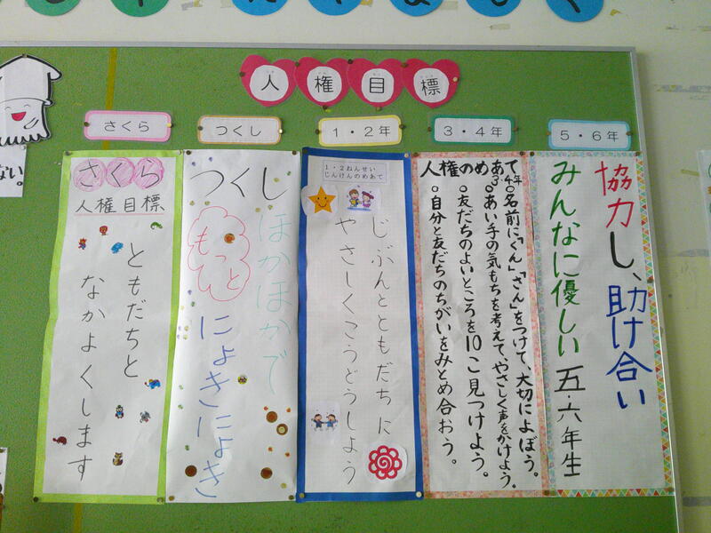 6月12日(月)から19日(月)まで、人権週間です。「思いやりの心」や「人権を大切にしようと言う気持ち」を育てる週間で、なかよし集会、人権の木、人権学習、個人面談等、様々な取組を行います。