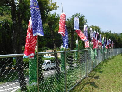 5月15日PTA会長の山下さんと地区委員長の西村さんが、100旒(りゅう)以上の鯉のぼりを運動場に揚げてくださいました。子供たちが元気にのびのびと成長するようにとの願いを感じます。その鯉のぼりが5月の風の中で気持ちよく泳ぐ中、教良木小学校の子供たちは、運動会の練習を頑張っりました。練習といえども大変楽しそうです。