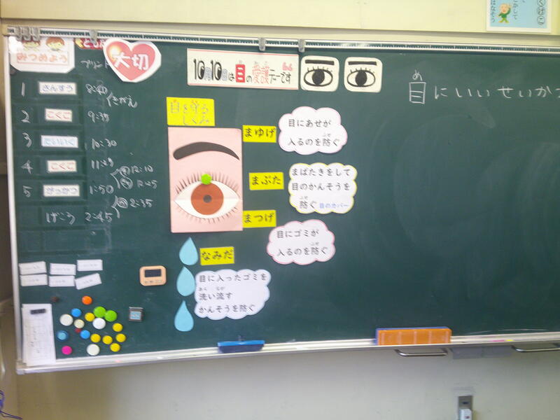 10月10日は「目の愛護デー」です。教良木小学校では、学活の時間に中野養護教諭から、目の役割や目に良い生活習慣について説明を受けました。子どもたちは自分の生活を振り返りながら、目を大切にするための工夫を学びました。