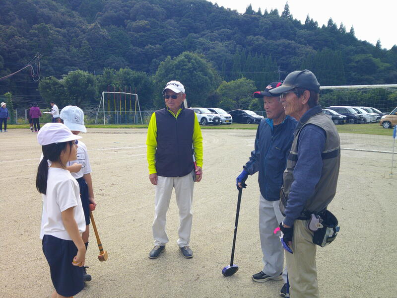 11月30日(木)教良木小学校の運動場でグランウンドゴルフ大会を開催しました。地域の方と全校児童で4チームを作り八つのホールを回りました。地域の方は日頃の腕前を発揮されて素晴らしいプレーが続出していました。それに負けじと児童もホールインワンを達成し、盛り上がった大会になりました。