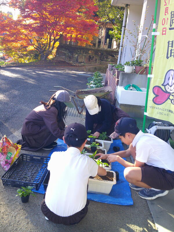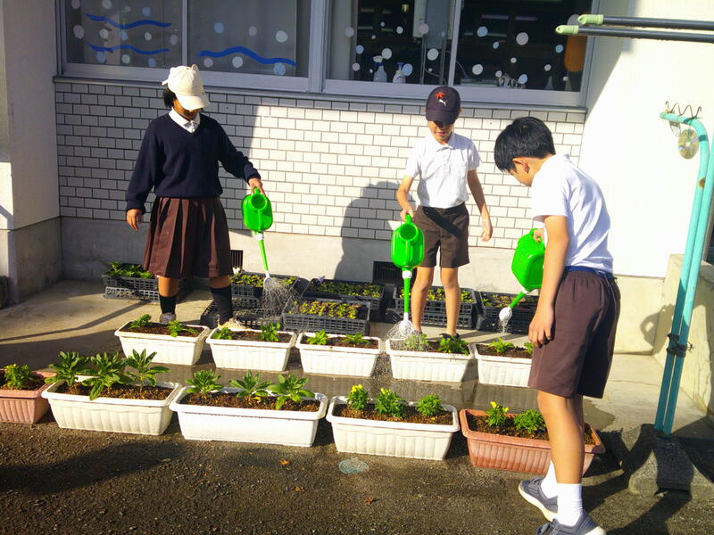 教良木小学校では、日頃からお世話になっている地域の皆さまへの感謝の気持ちを込めて、花のプレゼントを行っています。27日には、児童たちが「きれいな花を見て、地域の人が笑顔になってほしいです」と話しながら、心を込めて花の苗をプランターに植えました。また、「大きく育つように、毎日水やりをがんばります!」と意気込む声もあり、子どもたちの「ありがとう」の気持ちが花とともに育っています。もう少し大きくなったら、地域の皆さまへお届けします。