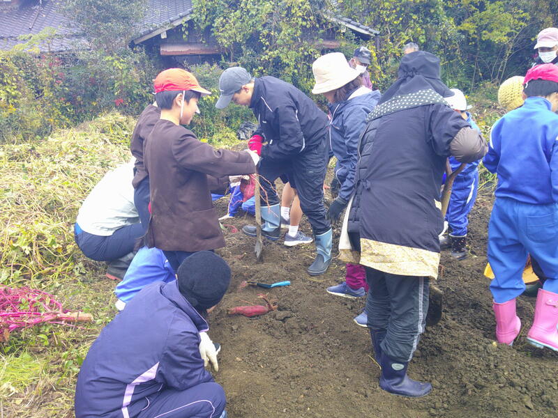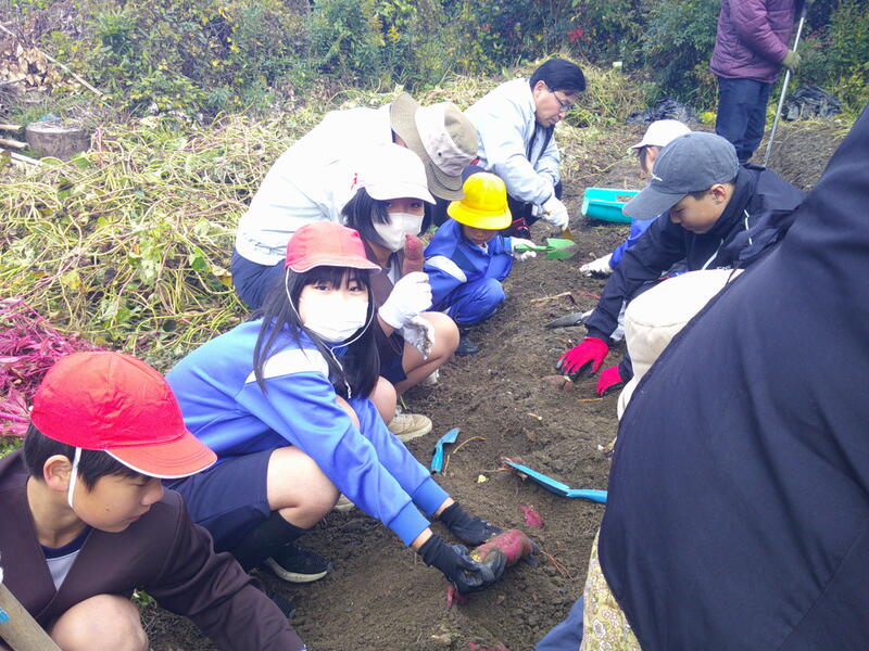 6月6日に植えたカライモを、地域の方々と協力して収穫しました。土の中から大きな芋が次々と顔を出し、笑顔と歓声が広がる楽しい時間となりました。今年も大豊作で、なんと 83キロものカライモを収穫!地域の皆さんと一緒に掘った芋は、これからおいしい「いも料理」にしていただきます。子どもたちにとって、地域の方々とのふれあいは貴重な学びの場となりました。