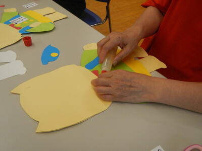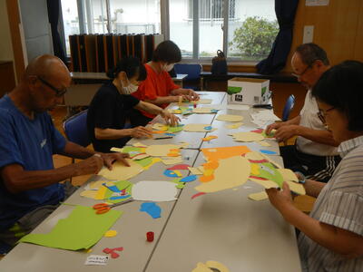 ボランティアの方々と推進員の6人で、色画用紙を切ったり、のりで貼り合わせたりして、5クラス分の掲示物を作成しました。楽しく話をしながら作業をしたので、時間があっという間に過ぎました。