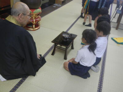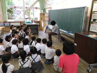 1年生の教室です。全員食い入るように見つめていました。