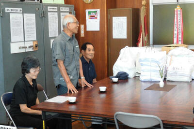 今年度も、「玉名町老人クラブ連合会」の皆様が、心を込めて手作りされた雑巾やマットを玉名町小学校へ届けてくださいました。