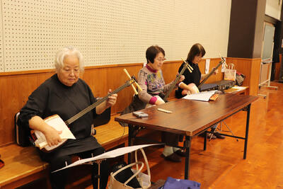 子どもたちは本番へ向けて、11月から放課後の時間を利用して、5回の練習を積み重ねてきました。元民謡保存会の大林聖子先生と玉名市文化協会の林田優子先生にご指導を、「雅会(みやびかい)」(志水雅子代表)の方々に三味線伴奏のご協力をいただきました。なんと、本校卒業生の中学1年生の生徒さんも三味線の伴奏に加わってくれました。子どもたちは楽しく練習に参加し、指導者や伴奏者の先生方との和気あいあいとした交流もできました。