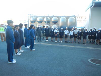 11月6日(木)に今年度2回目の「小中合同あいさつ運動」が行われました。玉名中学校の生徒会執行部の皆さんが母校の町小に来てくれました。町小の6年生や5、6年生の生活安全委員会の子ども達と一緒に、児童昇降口前に立ち、登校する子ども達に「おはようございます。」と声を掛けました。大勢の出迎えに驚いた子もいましたが、立ち止まって、お辞儀をして「おはようございます。」と上手なあいさつができている子が増えてきました。校長先生から示されている目標の「三つのあ」(いさつ・きらめない・りがとう)の一つでもあるあいさつが、これからも自ら進んでできるようになってほしいと思います。