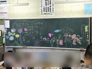 2年生の教室では、感謝の言葉が詰まった黒板がありました。