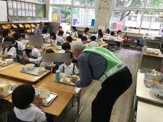 今日は、日頃の感謝の気持ちを込めて低学年の教室で一緒に給食を食べていただ