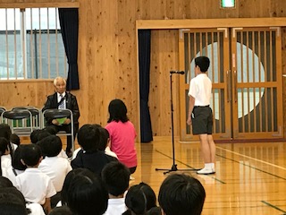 児童を代表して6年生の島君がお礼の言葉を述べてくれました。