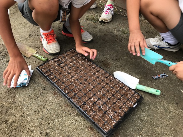 もちろん、子どもたちだけで種子から苗を育てることは難しいので、栽培ボランティアの山下さんから指導をいただきながらの作業でした。