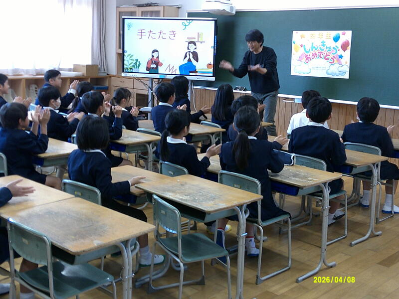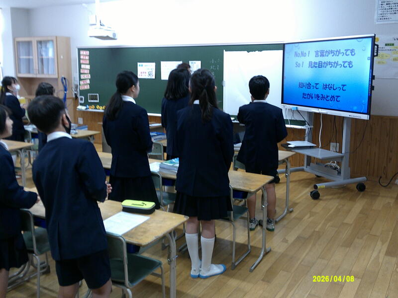 令和8年4月8日(水)、子どもたちが目を輝かせて登校してくれました。今年度は、児童数588名、職員60名でスタートしました。校長先生からは、児童と先生たちが一緒にがんばっていきたいことについて、「進んであいさつ」、「学校をきれいに」、「時間を守る」、「感謝の気持ちを持つ」、「思いやりの気持ちを持つ」、「人の話を聞く」と話がありました。