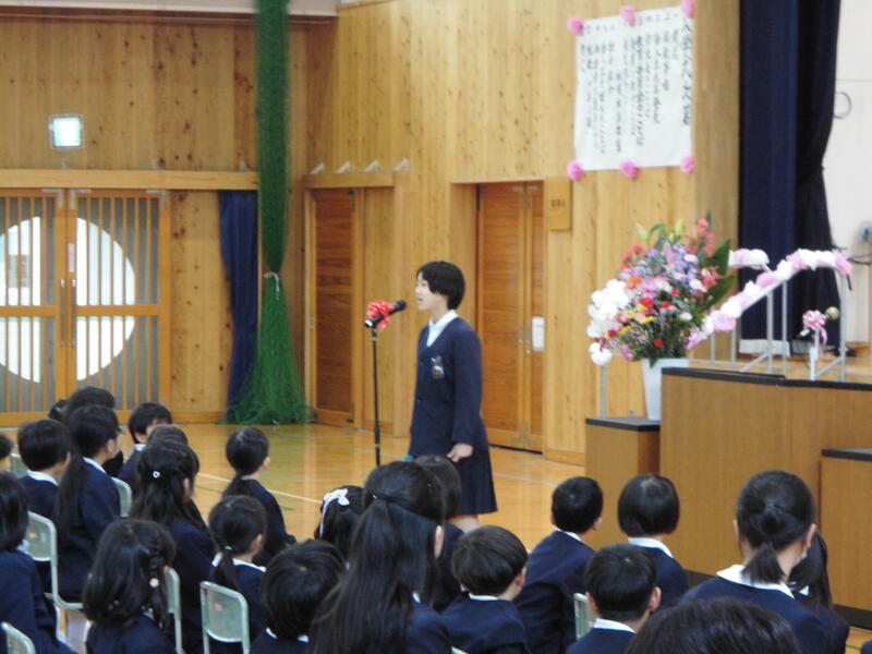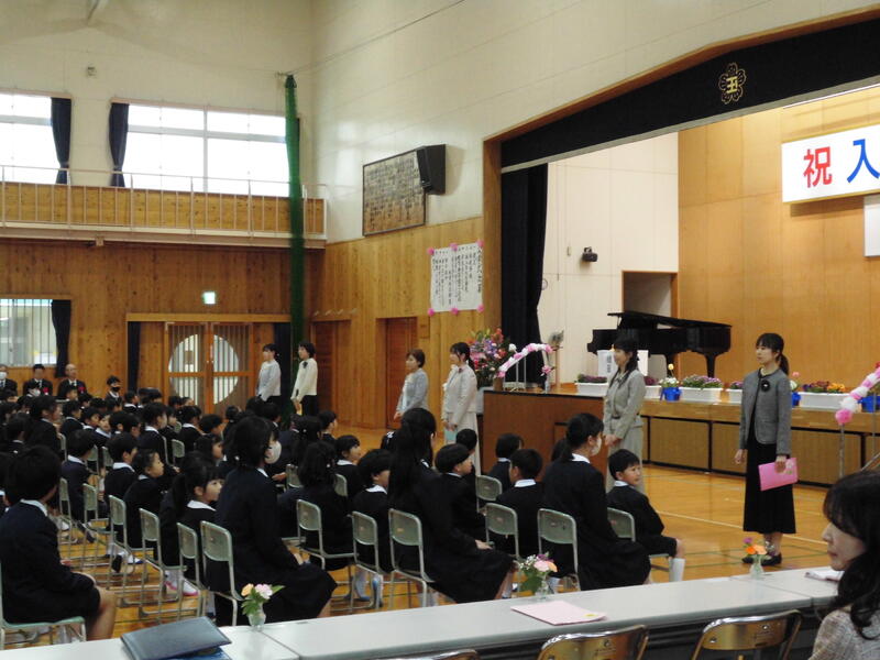 4月9日(木)、94名の新一年生を迎えて入学式を行いました。保護者の方に手を引かれながら、少し緊張している様子も見受けられましたが、上手に返事ができました。明日から、車やバイク、自転車に気を付けながら、事故に遭わないよう安全に登校してきてください。