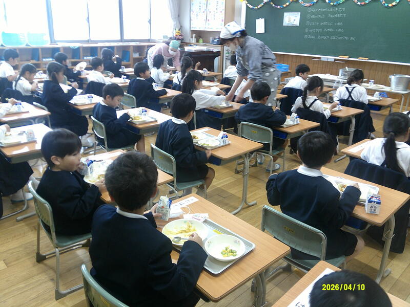 今年度は、印刷ボランティアと丸付けボランティア、フッ化物洗口ボランティアの方々に来ていただきました。町小のおいしい自校給食を食べていただきました。皆さん口々に「おいしい!」と、舌鼓を打っておられました。