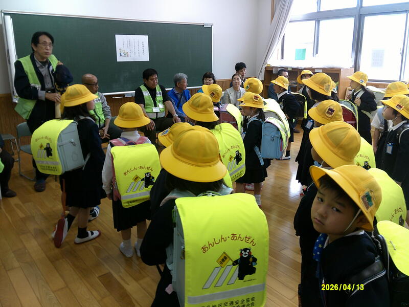 町小には子どもたちの登下校の見守りをしていただく、防犯ボランティアの方々がいらっしゃいます。今日は、1年生の下校前に顔合わせ(1年生とボランティアの方)をした後、一緒に下校をしていただきました。子どもたちの安全な登下校をサポートしていただく心強い味方です。