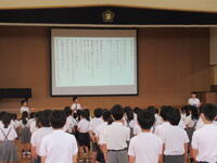 7月1日(火)の朝の時間に、全校集会を開き、ルールやきまりを守って、安全・安心に学校生活を送る事を確認しました。