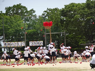 玉入れはみんなで力を合わせました。