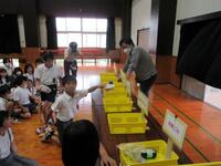 今日は、産業資源循環協会の方をお招きし、環境教室を開きました。ゴミの分別の仕方や環境問題について学びました。ゴミを収集するためのパッカー車を間近で見て、実際にゴミ袋を投げ入れる体験もしました。持続可能な社会を目指す一員としての自覚が高まったようです。