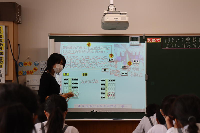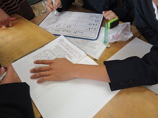 等しい分数の作り方を、一人一人が熱心に考え、グループでよりよい方法を話し合った1時間でした。