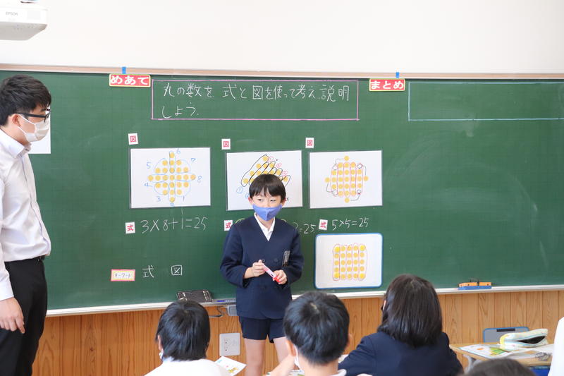 ブロックを操作したり、図を書いたりして子どもたちは自分の考えを一生懸命友だちに伝えていました。