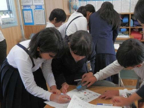 子どもたちは自分と似た考えの友だちとグループを作って、自分の考えと友だちと考えを比較し交流しました。