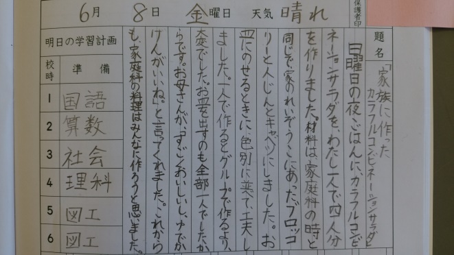 初めての調理実習で、とても楽しそうな5年生でした。次の調理実習が楽しみです。