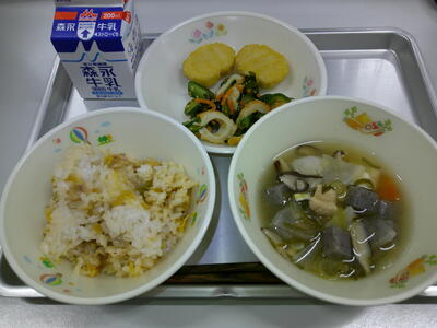 「キムタクご飯」は、キムチとたくあんが入っている混ぜご飯です。長野県塩尻市の栄養士の方が、子ども達に漬物をおいしく食べてもらうために考案した一品です。本校では、キムチとたくあんを細かく刻み、味を調え、ご飯と混ぜ合わせています。子ども達に人気のメニューの一つです。おいしかったです。