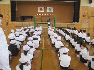 体育の時間には、まっすぐ整列ができました。何でも上手になっていく1年生です。