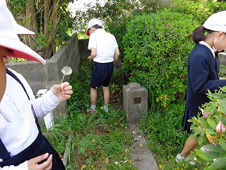 今日の授業は、校庭に出て春の生き物探しをしました。