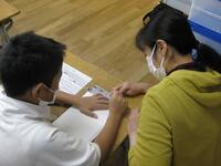 午前中は、各クラスで点字体験を行いました。6つの点を組み合わせることで文字に表せることに驚きながらも、点字を打ったり読み取ったりする大変さを感じることができました。