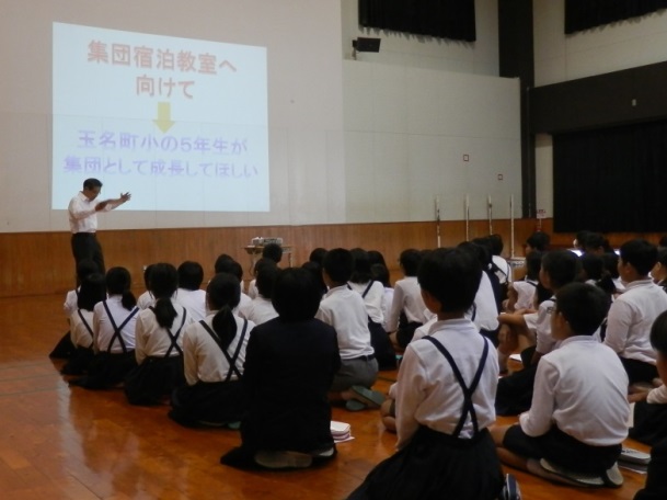 「『友だちのよさを見つける』②『正しいことを学ぶ』集団宿泊教室にしましょう。多くのことを学んでください。」