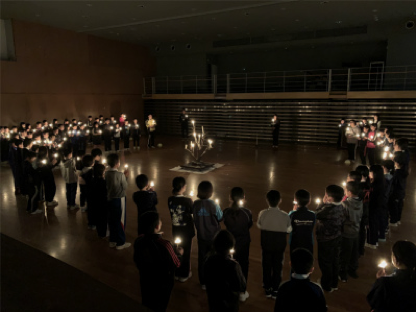 第1部…ろうそくに火を灯し、集団宿泊教室の誓いを発表し、「遠き山に陽は落ちて」を歌いました。