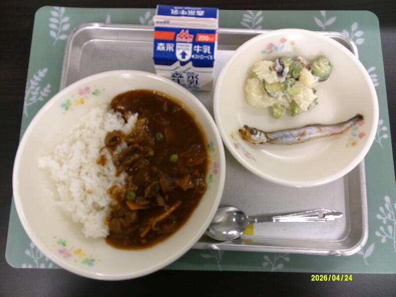 お店で出されるようなとても美味しいハヤシライスでした。カルシウムが必要な子どもたちにとって、ししゃもも美味しい味付けにしてありました。