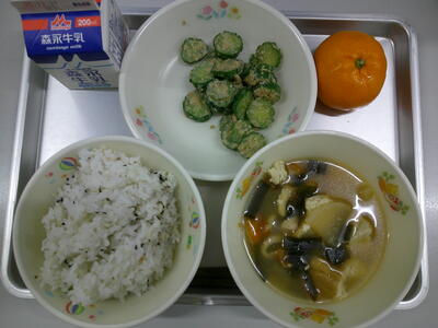 胡麻ご飯 おでん 胡麻キュウリ ミカン 牛乳