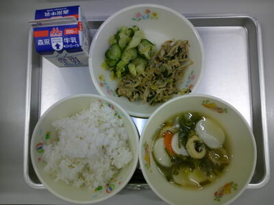麦ご飯 たけのこすまし汁 焼肉 ツナサラダ 海苔 牛乳